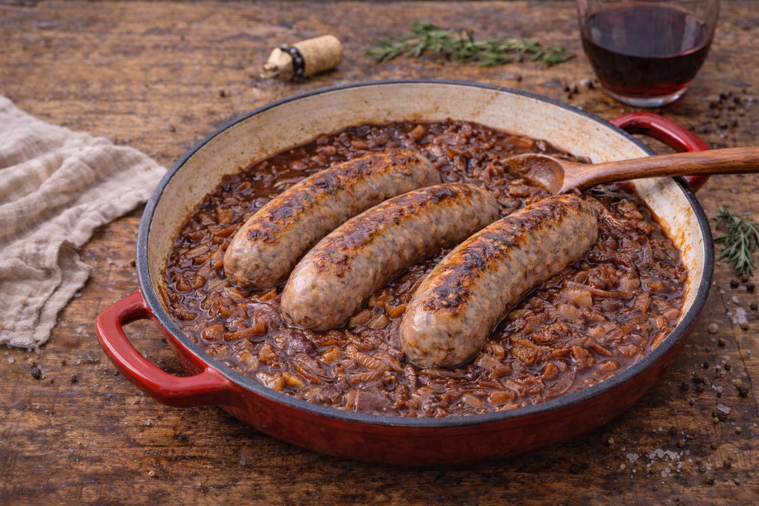 La receta butifarra al vino no necesita técnica complicada. Necesita paciencia. Y cebolla. Mucha cebolla. El vino hace su parte pero la cebolla es la que construye el plato poco a poco.