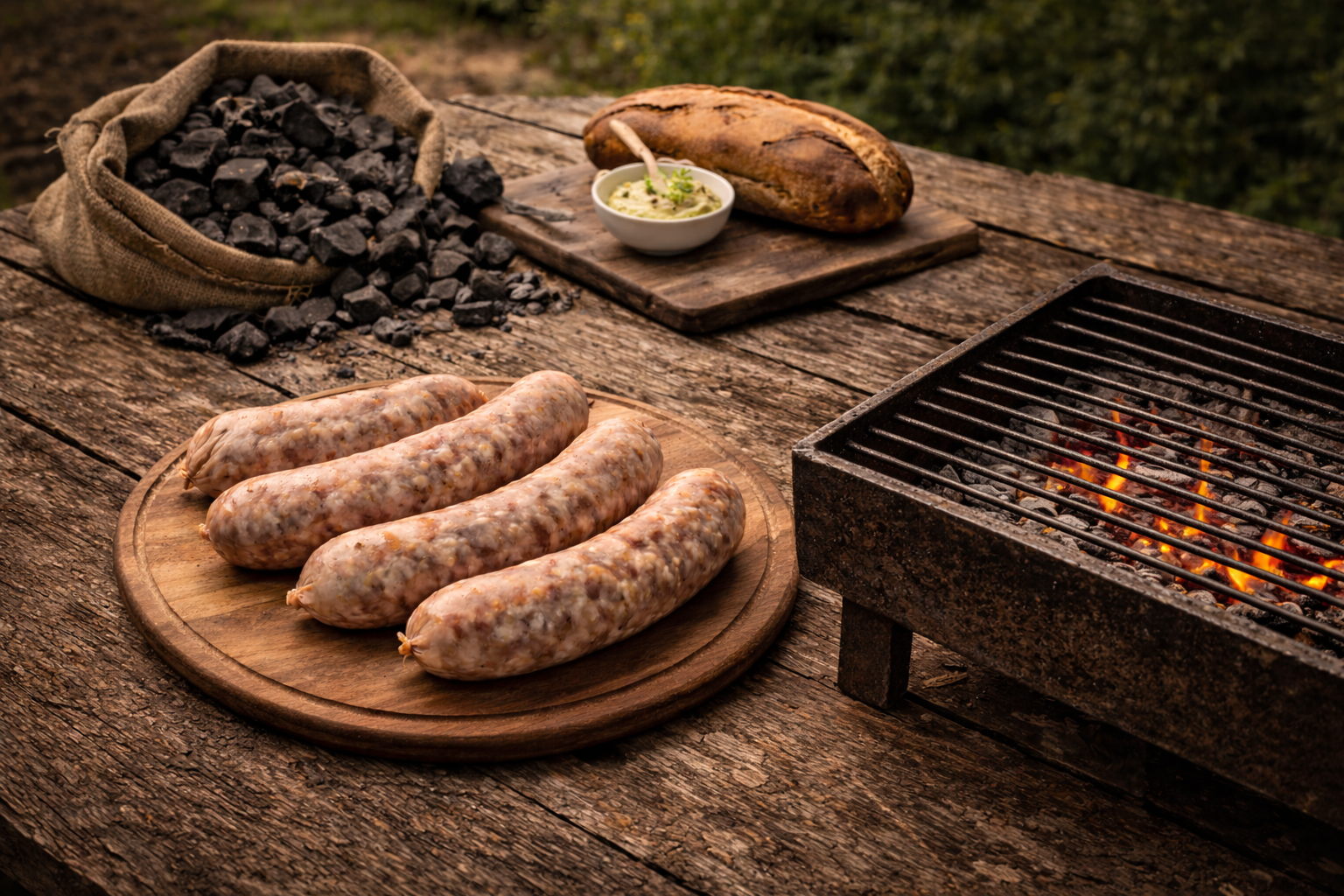La butifarra a la brasa no necesita marinados ni inventos. No mejora con especias añadidas. Pan crujiente. Quizá un poco de alioli. Nada más. Todo lo demás distrae.